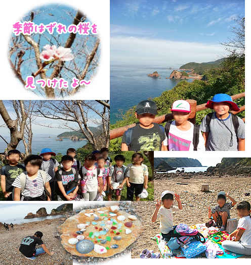 10月28日 妙見ケ浦へ行ってきました(^^♪ なかなか歩くことが少なくなってきたご時世ですが、 私たちのまわりには、たくさんの自然に恵まれていることに感謝しながら歩くことができました! 「きつ~い」「遠いよ~」など、色んなネガティブ発言が出てましたが…子どもって不思議ですよね! 着いた途端、さっきまでの疲れが一気にとんでしまったかのように遊び始めました♬ 岩の上に登ったり、貝殻やきれいな石を集めて、お店屋さんごっこしたりとパワー全開でした! きつかったけど、みんなと協力して歩けたこと、 良い思い出の1ページになってほしいです。 ![]() 記事一覧 |