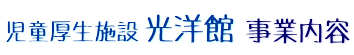 | 光洋館登録児童の利用 (1)長期休暇中の利用 光洋館登録児童利用者、高学年児童が、休暇中に規則正しく生活リズムを維持できるようにしています。 サマーキャンプ等を実施して長期休暇中は、より幅広い活動ができるよう配慮しています。 (2)他の児童団体との交流 長年交流している長崎県の児童クラブ、旧本渡市の育成団体等との交流など、 休暇中には特に他の地域との交流を図れるようにしています。 児童館利用料 登録費用 3000円(損害保険代金に充当) ランチ代金 日額 300円 |