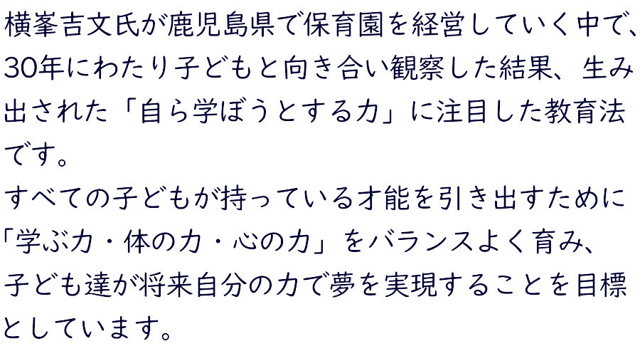 幼少期の豊かな経験をもとに、子どもたちの一人一人が希望を持って、未来へはばたいてくれることが私たちの大きな願いです。