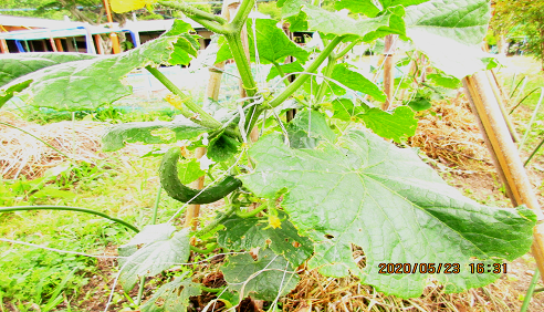 園庭にある菜園のきゅうりがどんどん大きくなってきています。