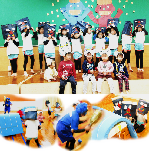 今年は青鬼登場!・・・と共に鳴き声が響き渡り、また、怖くて鬼から逃げ回りまるで鬼ごっこみたいでした。今年も楽しい豆まき会でした(笑)