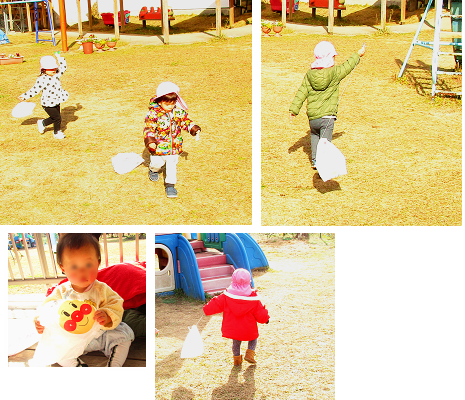 ぱんだぐみ、凧揚げしました。