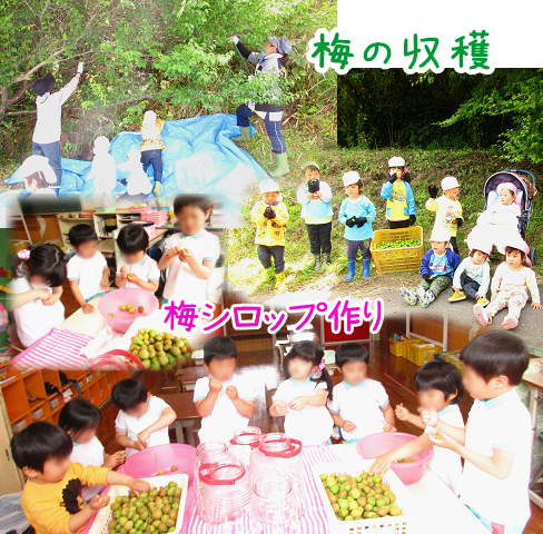 5月の連休明けに梅の収穫を行いました。「先生あったよ!」と、梅の木から落とされる実を夢中で拾い集める子どもたち!