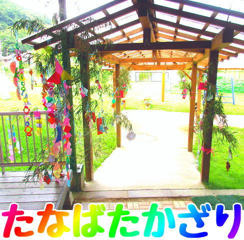 園庭の通路に七夕の笹を飾り付けました。