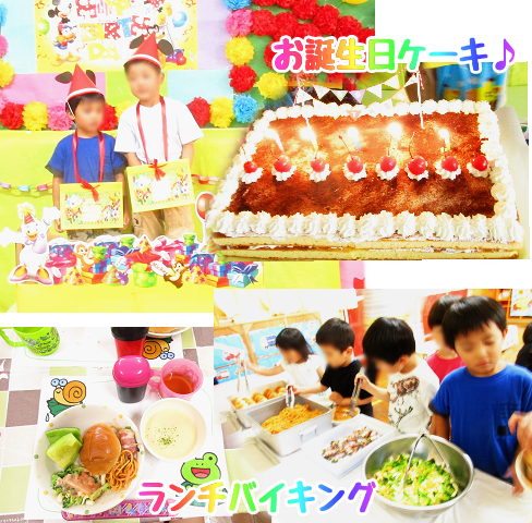 6月の誕生会は2名の誕生者を囲んで、バイキングによる食事を楽しみながら“誕生パーティー”が行われました。