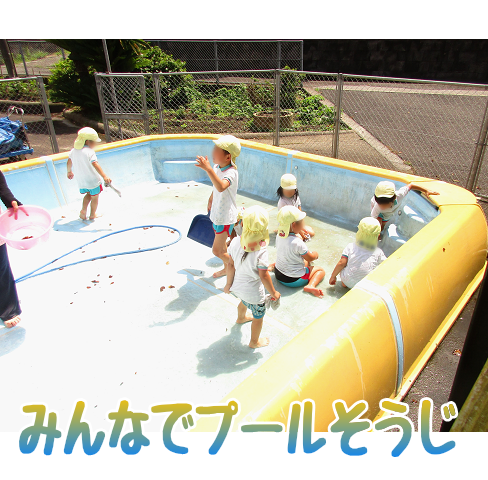 7月5日のプール開きに向けて、プール掃除を頑張りました。