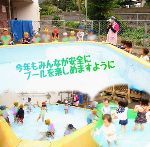 待望のプール開き!安全祈願をして水遊びを楽しみました。